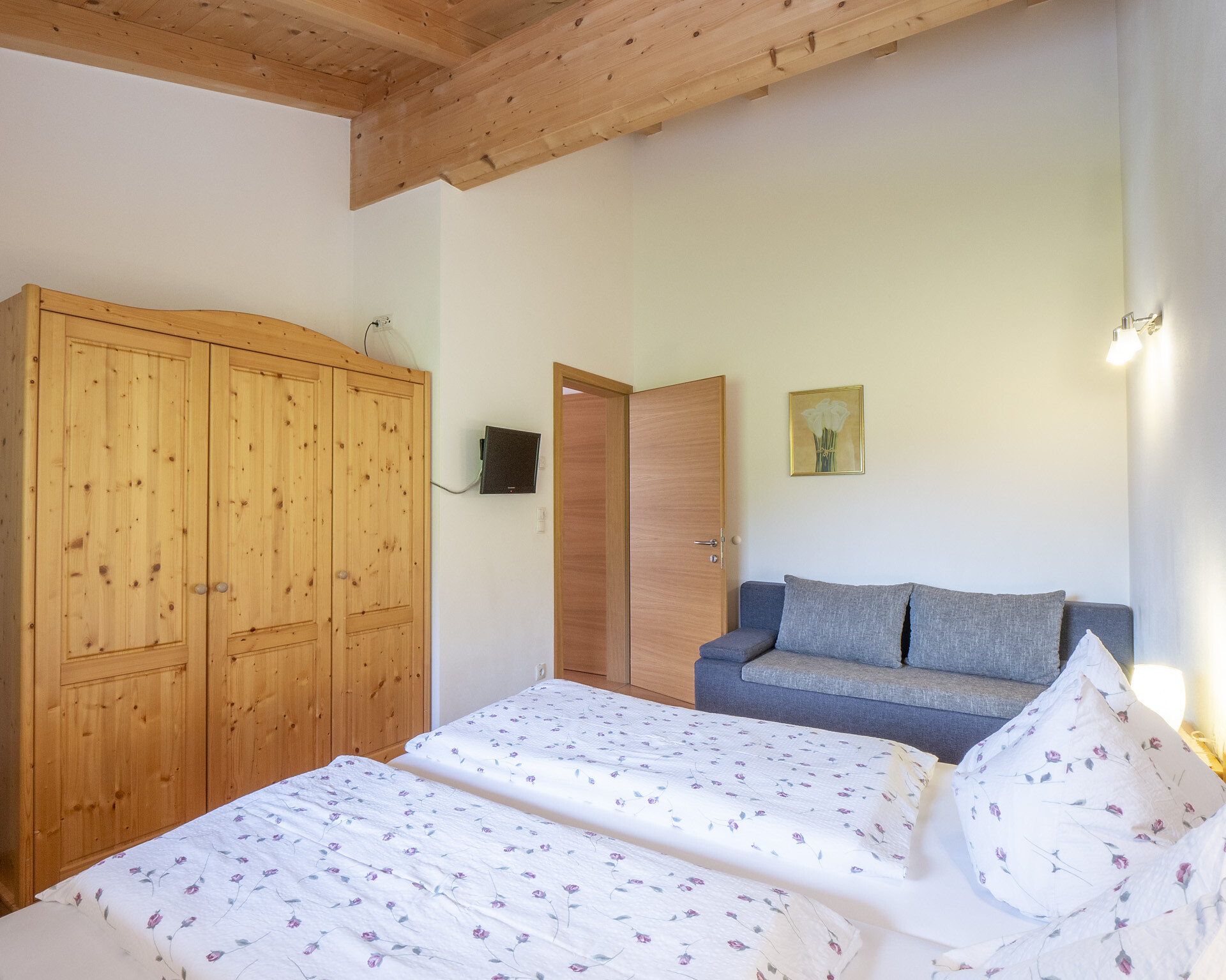 L’appartamento per le vacanze “Sultan”, che misura 40 m² ed è posizionato a sudovest, prende il nome dalla nostra prima cavalla e dispone di una camera da letto con letto matrimoniale e due letti singoli. Inoltre nella cucina abitabile c’è un divano letto per due persone. Dalla camera da letto la vista è straordinaria: si vedono i nostri splendidi cavalli! La connessione alla rete wireless è gratuita. Anche la cucina dell’appartamento “Sultan” è dotata di ogni comodità di cui non potete fare a meno neanche a casa vostra: la lavastoviglie, il forno, il piano cottura a induzione con cappa da cucina, il frigorifero dotato di reparto congelatore (freezer), la macchina per il caffè, il forno a microonde, il bollitore, diversi utensili da cucina e naturalmente piatti, posate e bicchieri. La cucina abitabile è il luogo ideale per rilassarsi e stare in buona compagnia, magari intorno al grande tavolo o seduti sullo spazioso divano. Il bagno è dotato di tutto il comfort necessario: vicino al lavandino c’è un ripiano con lo specchio. Ci sono anche una doccia, un bidet e una finestra. Mettiamo a disposizione gli asciugamani e all’occorrenza li sostituiamo. Il balcone si affaccia a sud verso Mareta e la Val Ridanna, regalando agli ospiti una vista meravigliosa.