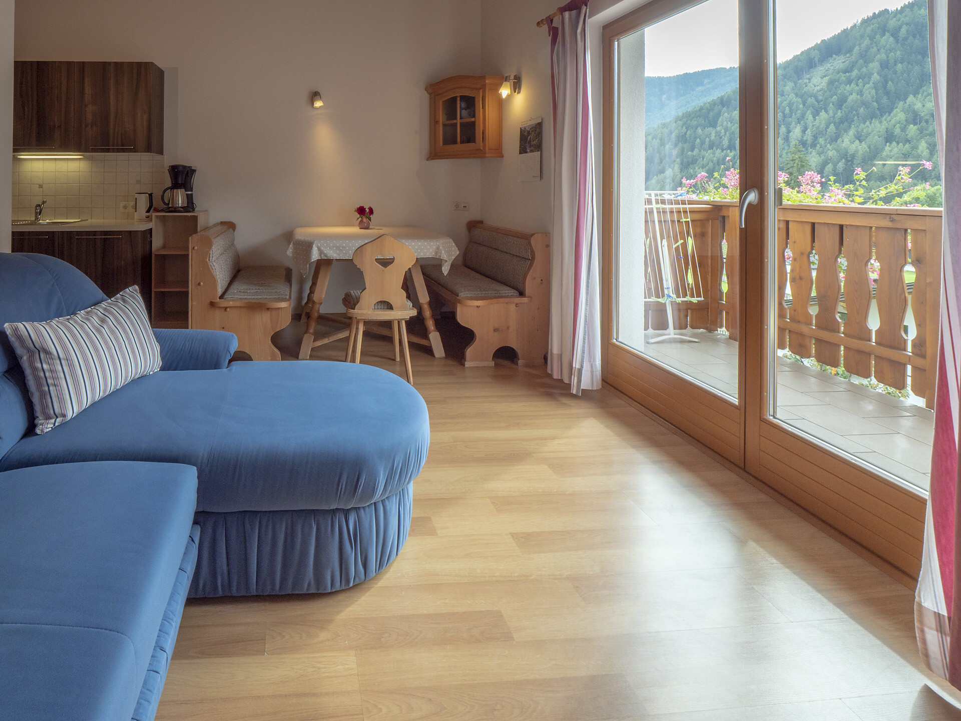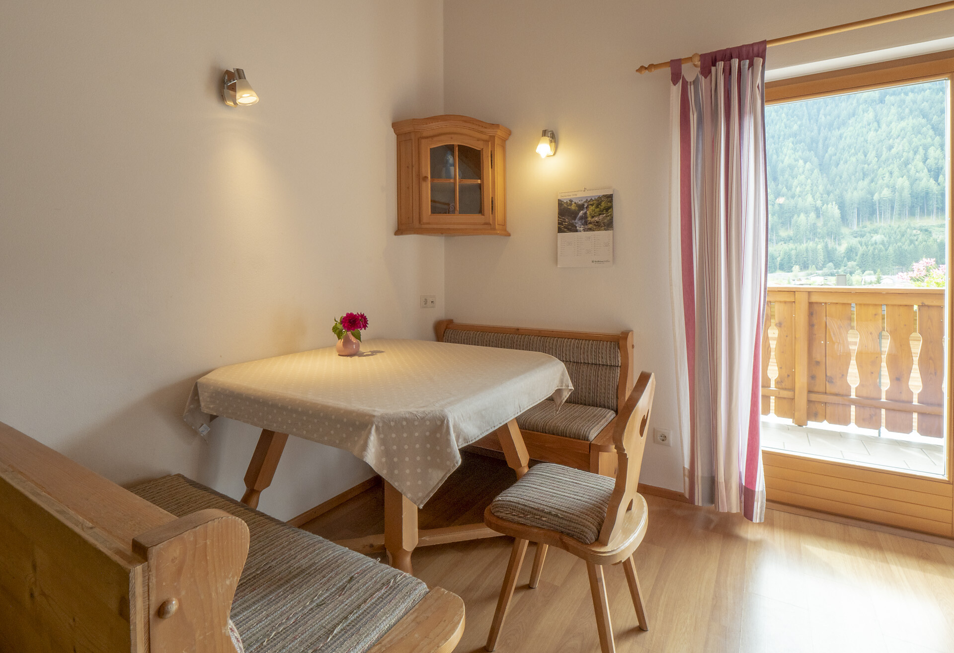 Poiché per noi è importante che l`ospite si sente a suo agio nella nostra casa a Mareta, abbiamo fatto di tutto per rendere i nostri appartamenti confortevoli e luminosi. L'appartamento "Sunny" si trova al piano superiore, da cui si gode una magnifica vista sia sul romantico villaggio di Mareta, sia sulla Bellissima Val Ridanna con le Alpi della Stubei. L'appartamento "Sunny", orientate asud-est ha 38m² e dispone di una camera da letto con letto matrimoniale e un divano-letto a, che può ospitare 1-2 persone. Nel soggiorno c’è anche un divano-letto, che può essere utilizzatao come possibilità di dormire. L'appartamento ha il Wi-Fi, che può essere usato gratuitamente.