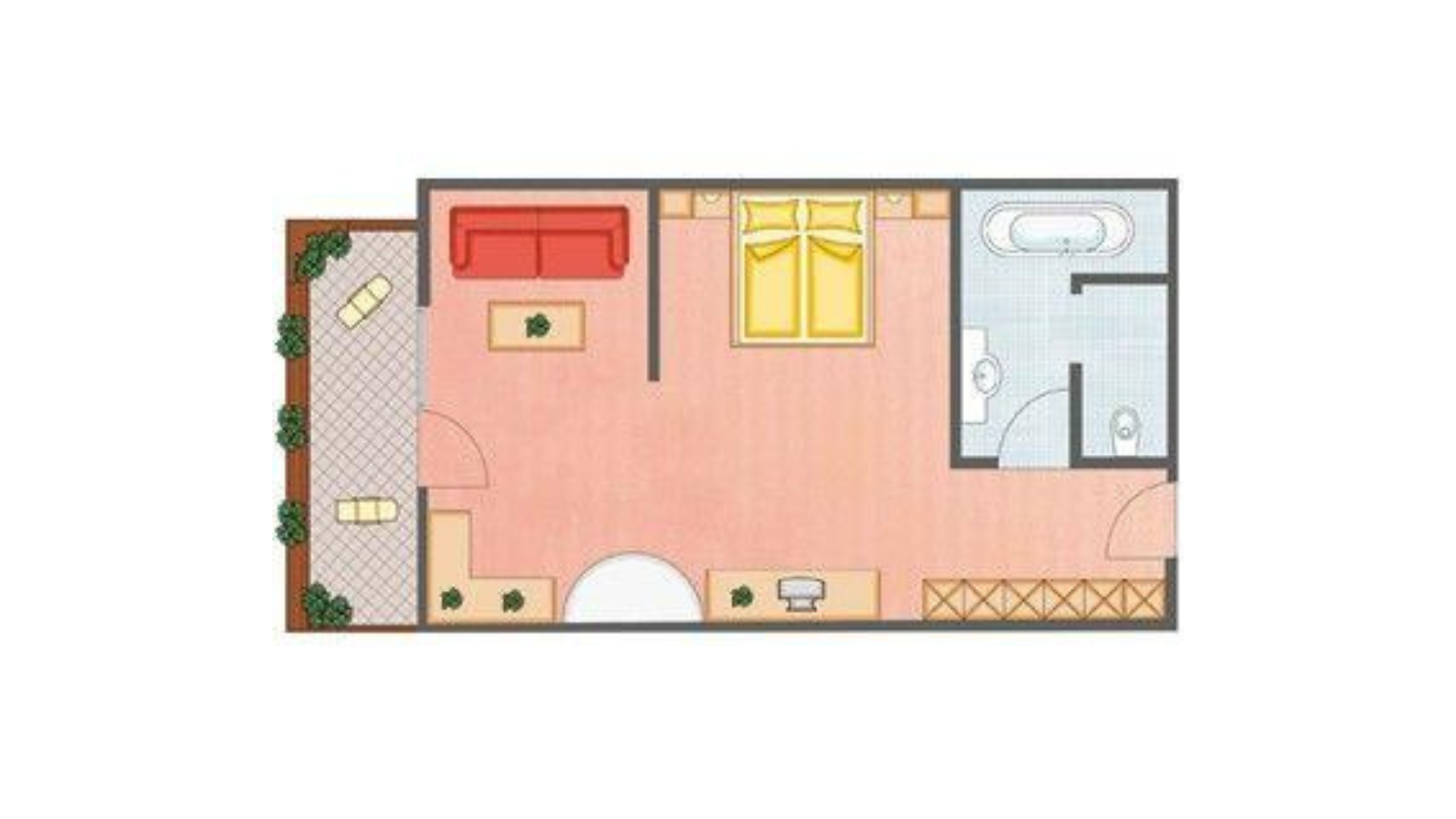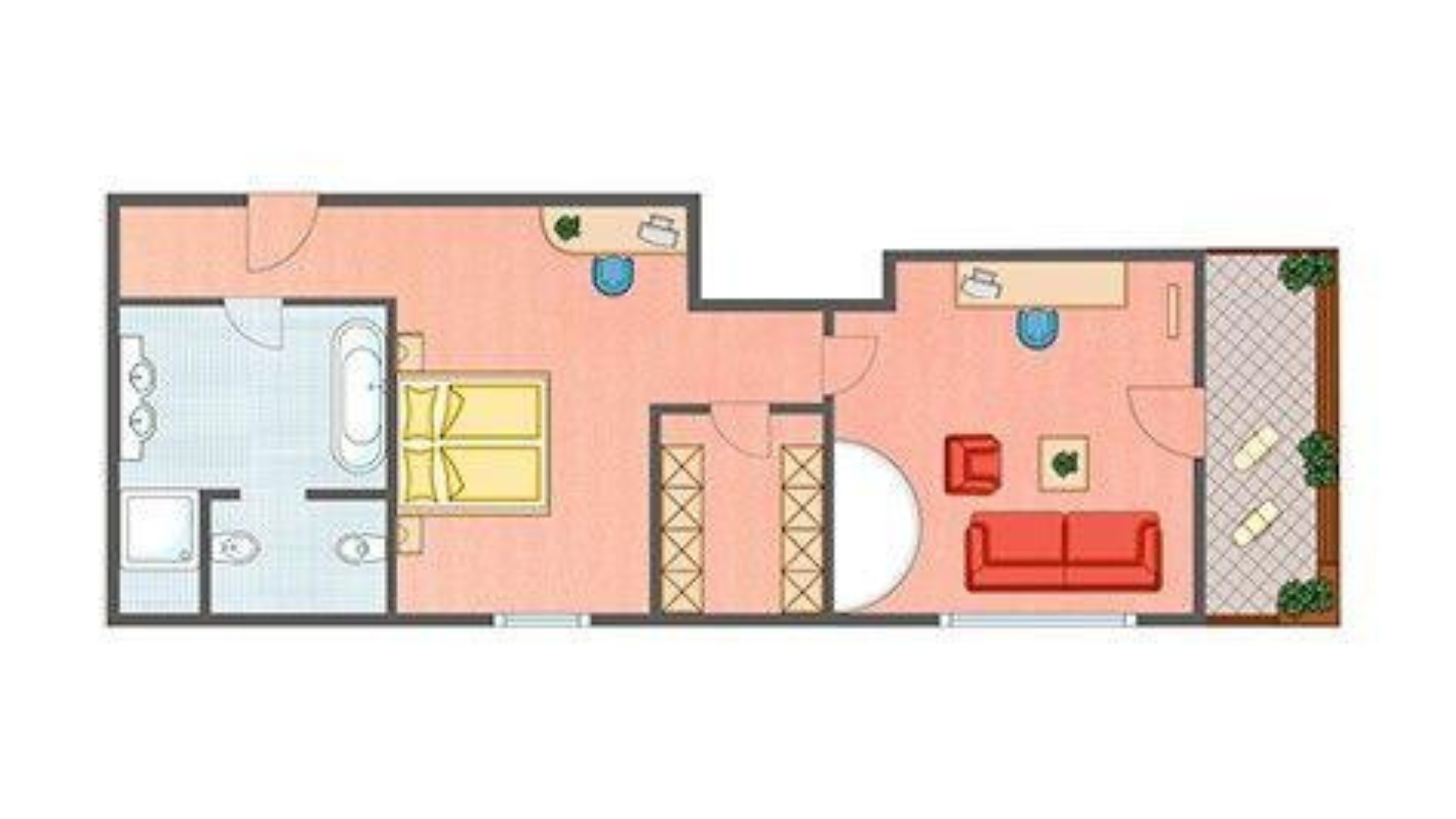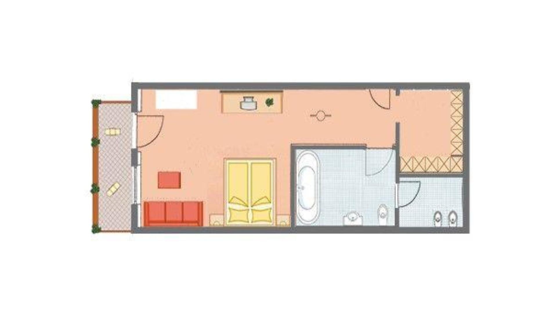 Struttura ben fruibile praticamente in tutti i suoi ambienti, ma non adeguatamente attrezzata nei servizi igienici o con servizi wellness difficilmente raggiungibili