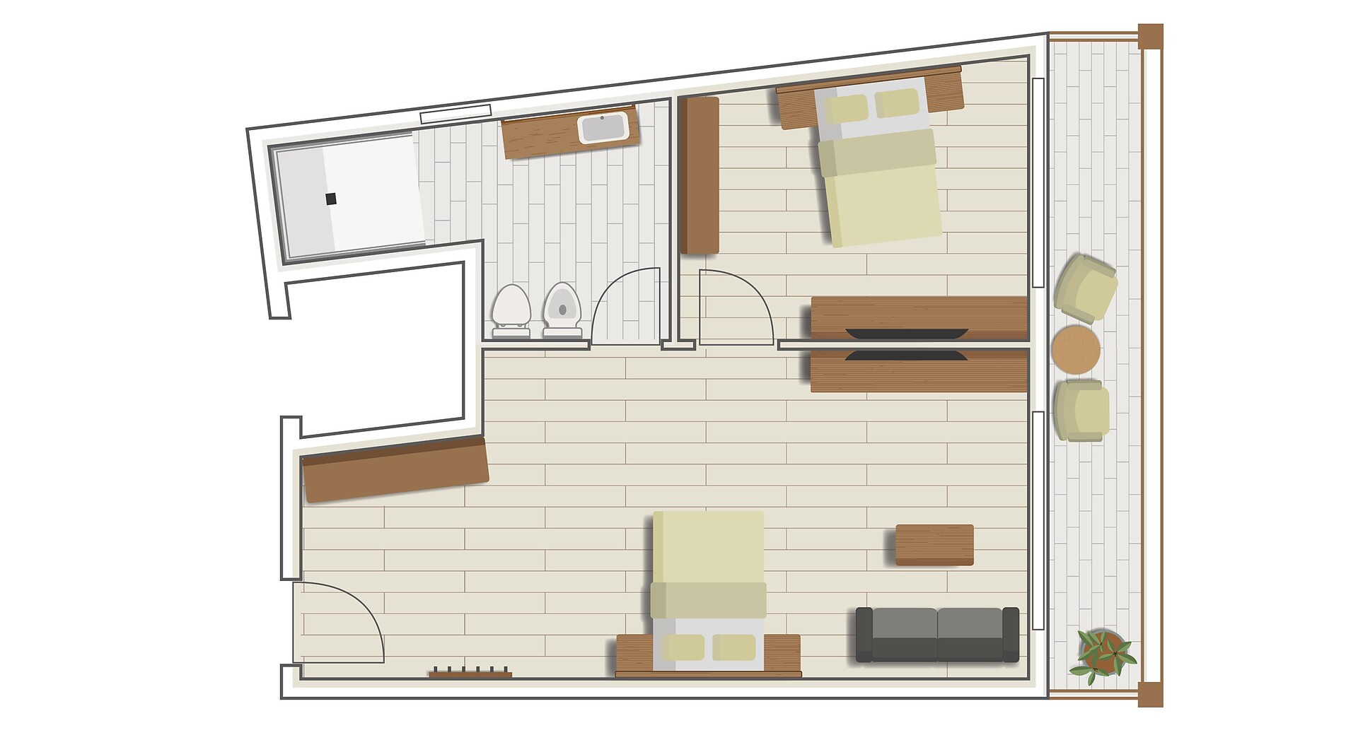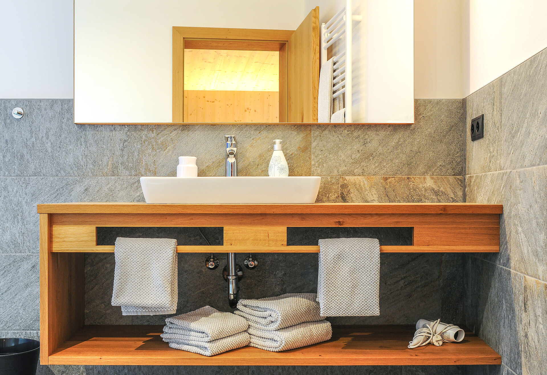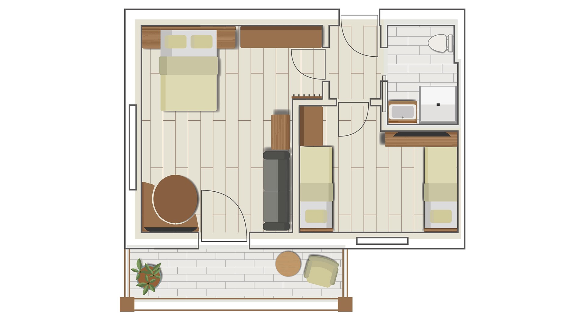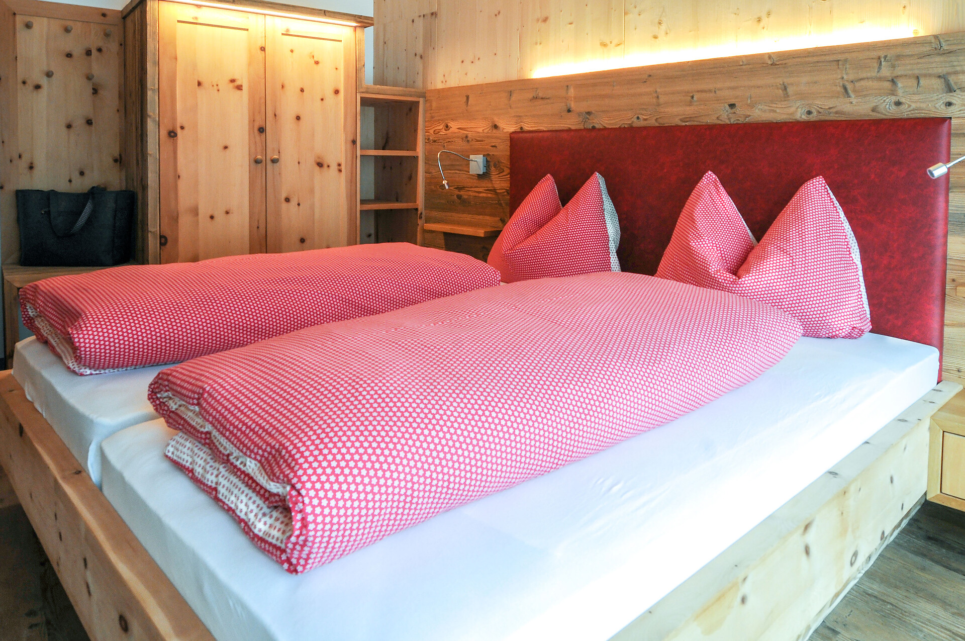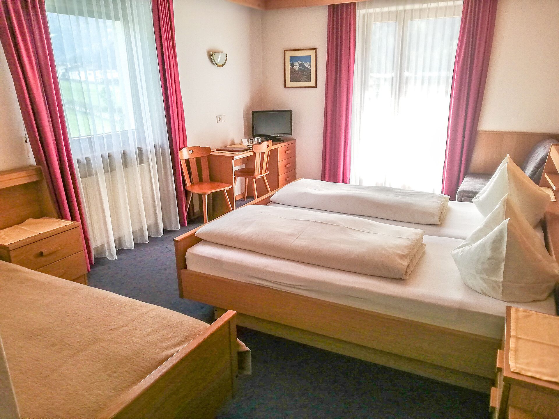 La nostra nuova Family Suite per 4-5 persone (ca. 45m²) con balcone vista Valle, in stile alpino moderno, offre due stanze separate e un bagno spazioso dotato di ampia doccia, WC, bidet, asciugacapelli. La camera è dotata di pavimente in legno, offre l’utilizzo gratuito del WiFi, 2 tv (43") a schermo piatto, cassaforte, scrivania e un divano utilizzabile, su richiesta, come possibile doppio letto aggiuntivo. Una borsa wellness con morbidi asciugamani per sauna e piscina sono a sua disposizione in camera.