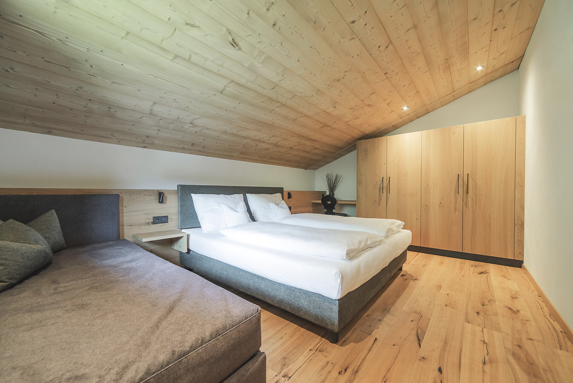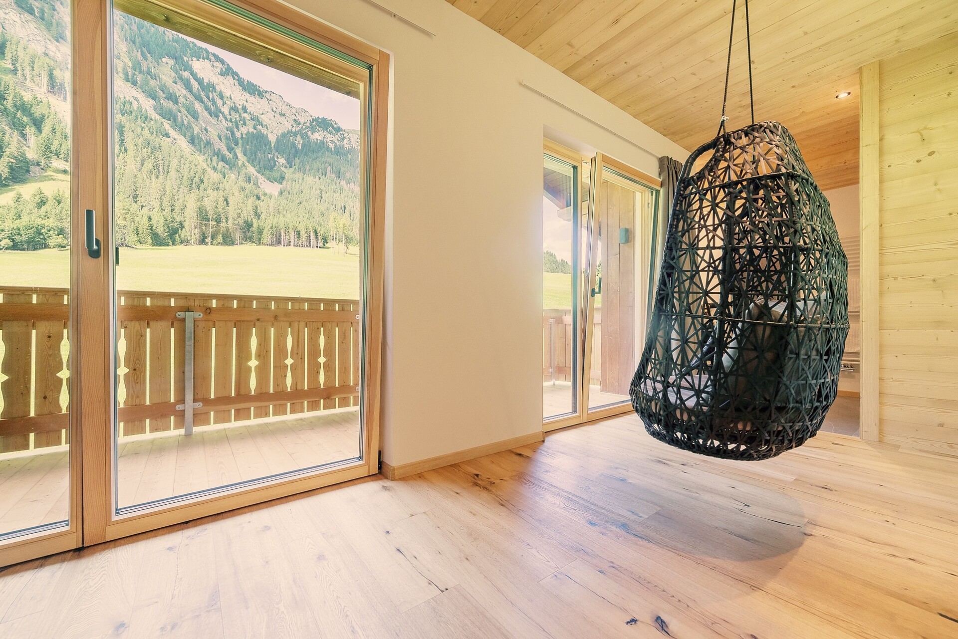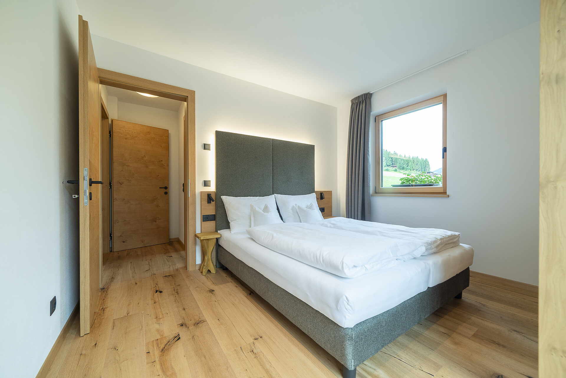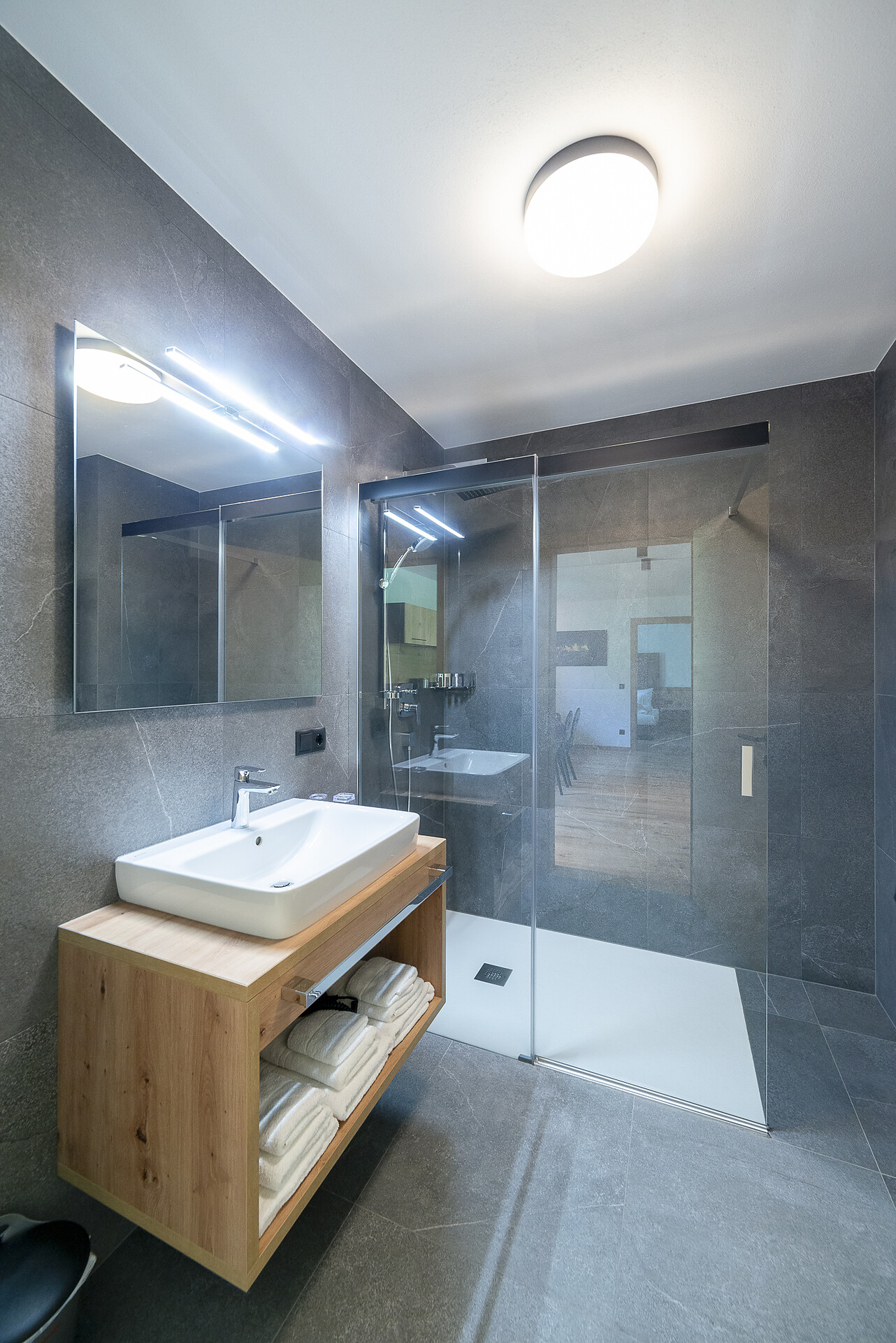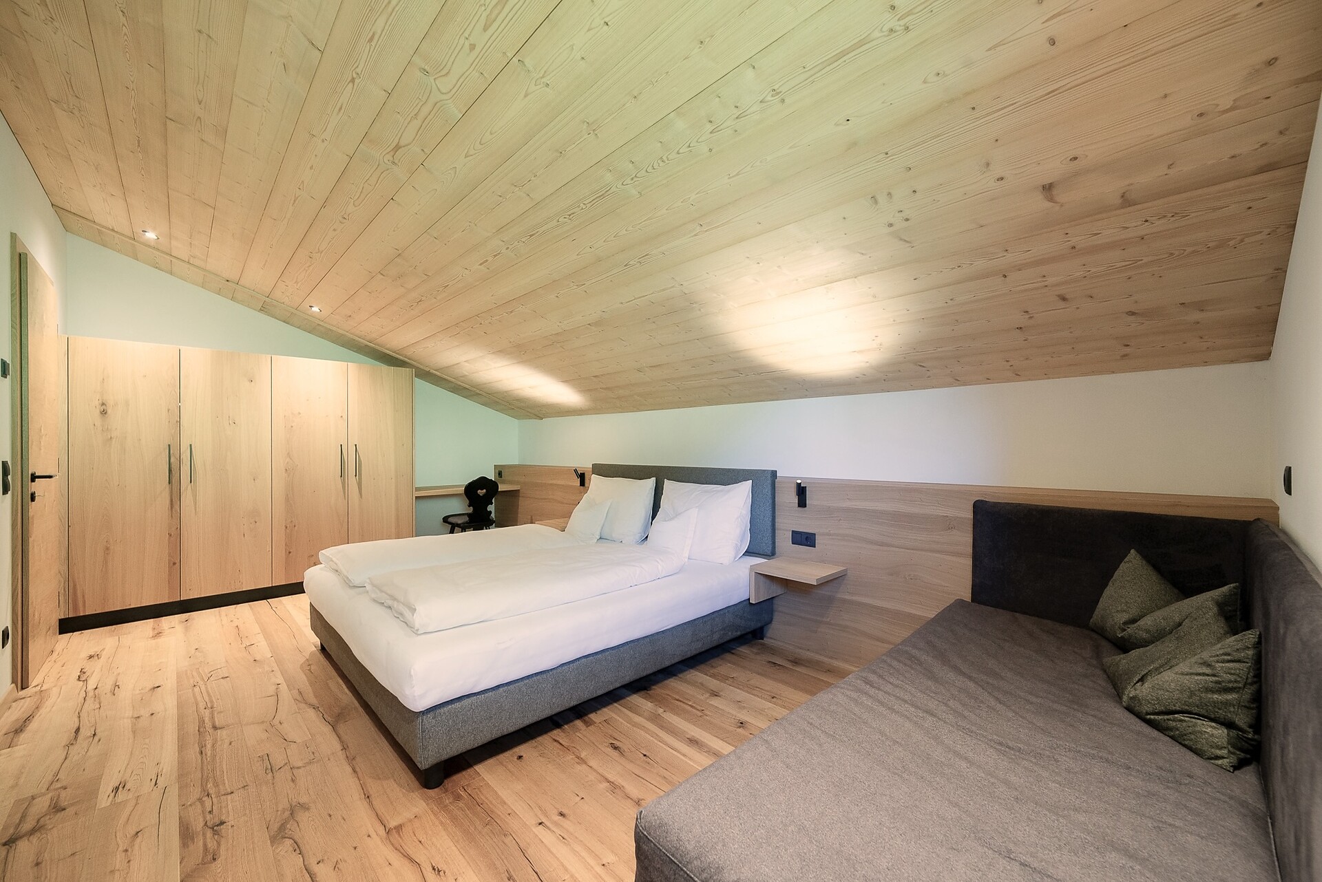 Vi aspetta un nuovissimo appartamento completamente attrezzato con cucina-soggiorno (piano cottura a induzione, frigorifero, lavastoviglie, macchina per il caffè, bollitore, stoviglie, utensili da cucina), zona salotto, Smart TV 42'', una camera da letto con letto king-size, un divano letto nel soggiorno e un ampio balcone in legno naturale con vista sulle montagne e il comprensorio sciistico di Racines-Giovo. Il pavimento, realizzato in legno massiccio di quercia, è riscaldato e offre una piacevole esperienza abitativa. Il bagno raffinato, con piastrelle scure e una doccia a pioggia, attira l'attenzione.