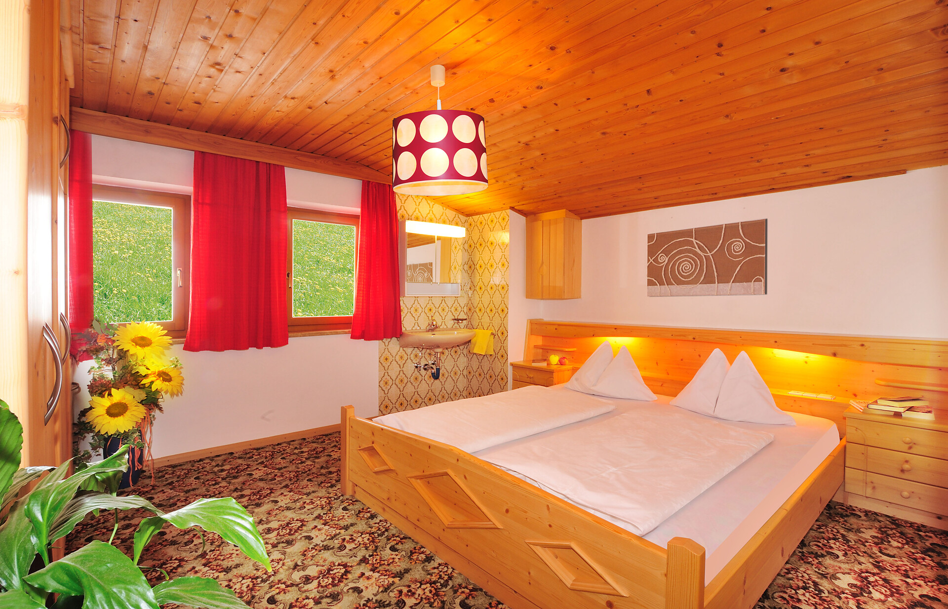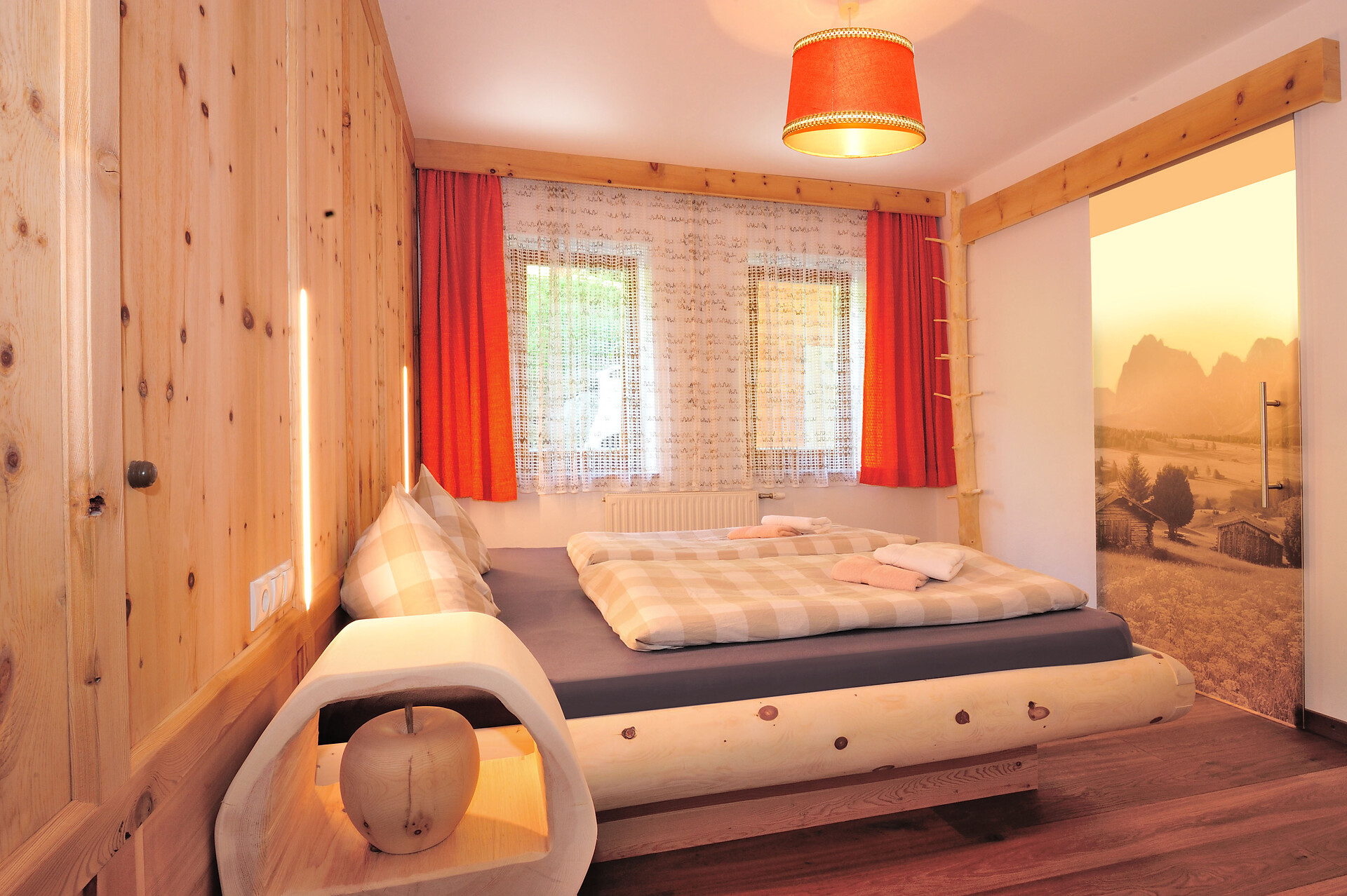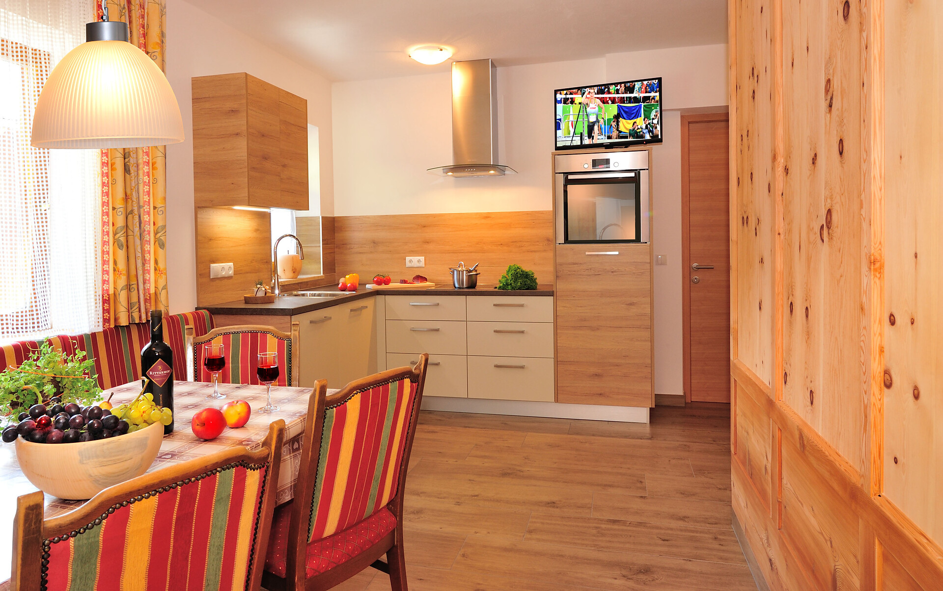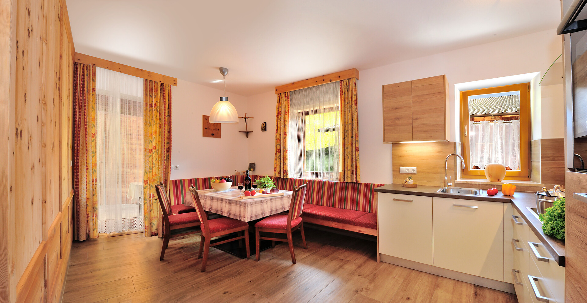 bello appartamento nel primo piano con 45m2: cucina/salotto complettamente attrezzata con divano (possibilità per dormire per 2 persone), camera da letto con letto matrimoniale e divano (possibilita per dormire per 4 persone), 2 bagni con doccia, WC e bidet, terrazza, balcone, Sat-TV, WLAN, accesso diretto all`esterno.
